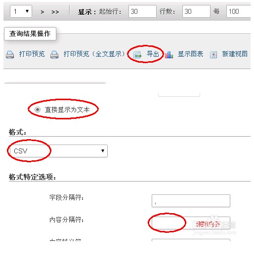 在執(zhí)行SQL語句生成的頁面上點(diǎn)擊“導(dǎo)出”,選擇“自定義”->“直接顯示為文本”,CSV格式,清空“內(nèi)容分隔符”為空。