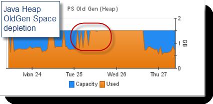 垃圾收集問(wèn)題并不一定會(huì)表現(xiàn)為一個(gè) OOM 條件,過(guò)度的垃圾收集可以理解成是 JVM GC 線程在短時(shí)間里進(jìn)行輕微或超量收集集合數(shù)據(jù)而導(dǎo)致的 JVM 暫停時(shí)間很長(zhǎng)和性能下降??赡苡幸韵聨讉€(gè)原因:與 JVM 的負(fù)載量和應(yīng)用程序內(nèi)存占用量相比,Java 堆可能選擇的太小。JVM GC 策略使用不合理。應(yīng)用程序靜態(tài)或動(dòng)態(tài)內(nèi)存占用量太大,不適合在 32 位 JVM 上使用。JVM OldGen 隨著時(shí)間推移,泄漏越來(lái)越嚴(yán)重,而 GC 在幾個(gè)小時(shí)或者幾天后才發(fā)現(xiàn)。JVM PermGen 空間(只有 HotSpot VM)或本機(jī)堆隨著時(shí)間推移會(huì)泄露是一個(gè)非常普遍的問(wèn)題;OOM 的錯(cuò)誤往往是觀察一段時(shí)間后,應(yīng)用程序進(jìn)行動(dòng)態(tài)調(diào)動(dòng)。建議:觀察和深入理解 JVM 垃圾回收。啟動(dòng) GC,根據(jù)健康合理的評(píng)估來(lái)提供所有的數(shù)據(jù)。記住,GC 方面的相關(guān)問(wèn)題不會(huì)在開(kāi)發(fā)中或者功能測(cè)試時(shí)發(fā)現(xiàn),它需要在多用戶高負(fù)載的測(cè)試環(huán)境下發(fā)現(xiàn)。